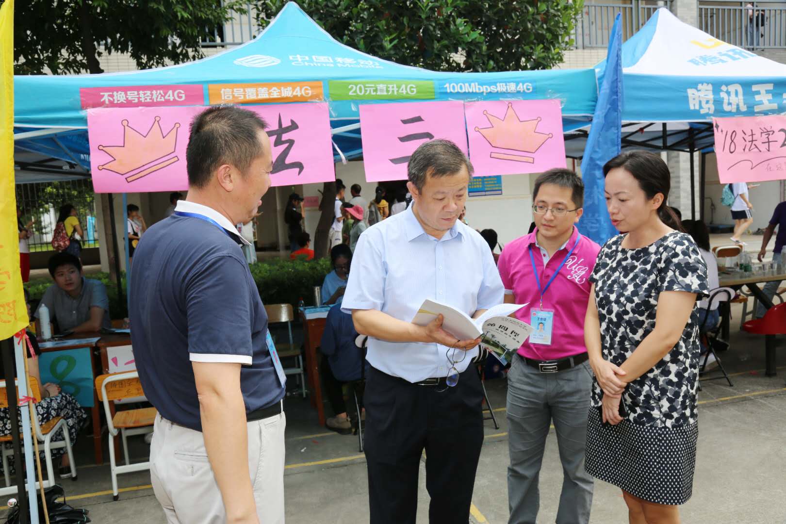 学校党委凌靖波书记、骆少明校长,潘自勉副校长、冯灿仪副校长等学校领导在学校办公室、学生处、团委等职能部门负责人的陪同下莅临我院新生报到点指导工作,并与家长、新生亲切交流。凌书记、骆校长叮嘱,要耐心细致、相互配合,对新生多关怀、多指引,为他们的学习生活营造良好的环境。