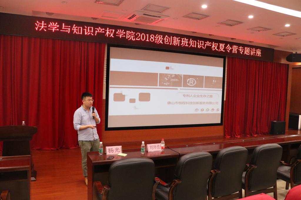 7月13日-14日,在广东技术师范大学白云校区三教讲学厅举行专题讲座,恒程知识产权总监康馨馨以中美知识产权摩擦为背景,介绍了英国和美国的专利制度,阐述了我国的专利现状及春天;恒程知识产权工程师李洋从专利检索工具、专利检索方法与技巧、专利检索结果分析等方面详细介绍了专利信息检索相关知识;恒程专利部负责人杨光以“专利人企业生存之路和专利诉讼取证方法”为主题,结合法律专业学习,以学员兴趣为抓手,为学员普及专利基础知识和技能;恒程商标部负责人刘沛佳结合具体案例,从不同维度和广度介绍了商标的基本知识。