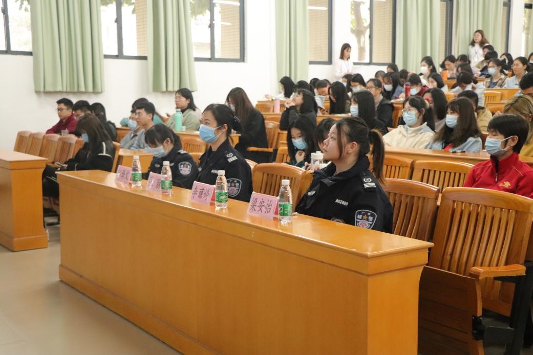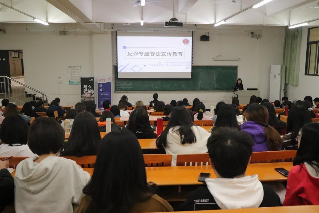 为进一步增强大学生网络安全意识,防范校园网络电信诈骗,在学校保卫处的指导安排下,3月23日我院在三教108举办了“反诈专题普法宣传教育”宣讲会。会议邀请了来自广州市公安局白云区分局、江高派出所张丽、邱泽文、李丽婷、梁安怡警官等人为同学们做防诈骗专题普法宣传教育,学院各宿舍舍长参加了本次会议。